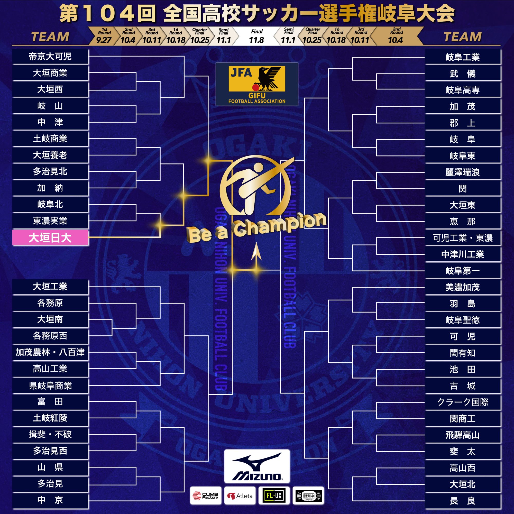 大垣日大サッカー部は10月11日(土)3回戦からです。